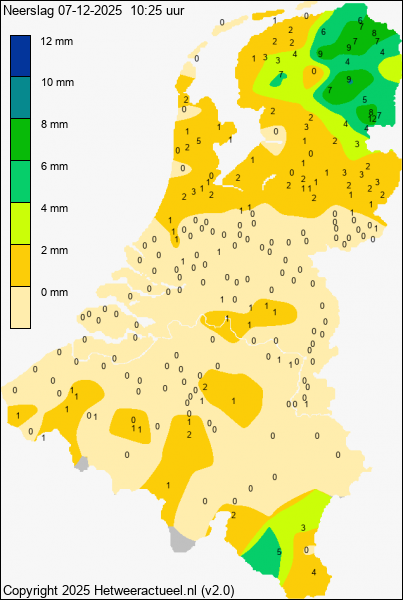 Op het tweede kaartje staat de neerslag die vandaag is gevallen tot en met het het tijdstip zoals vermeld in het kaartje.