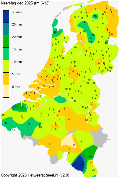 Het Zuid-Oosten van Belgie blijft lichtgrijs, omdat hier geen weerstations in de buurt zijn.